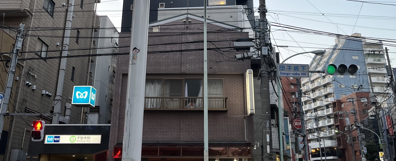 千駄木2丁目と3丁目の境を東へ下る坂が 【 団子坂 】です。