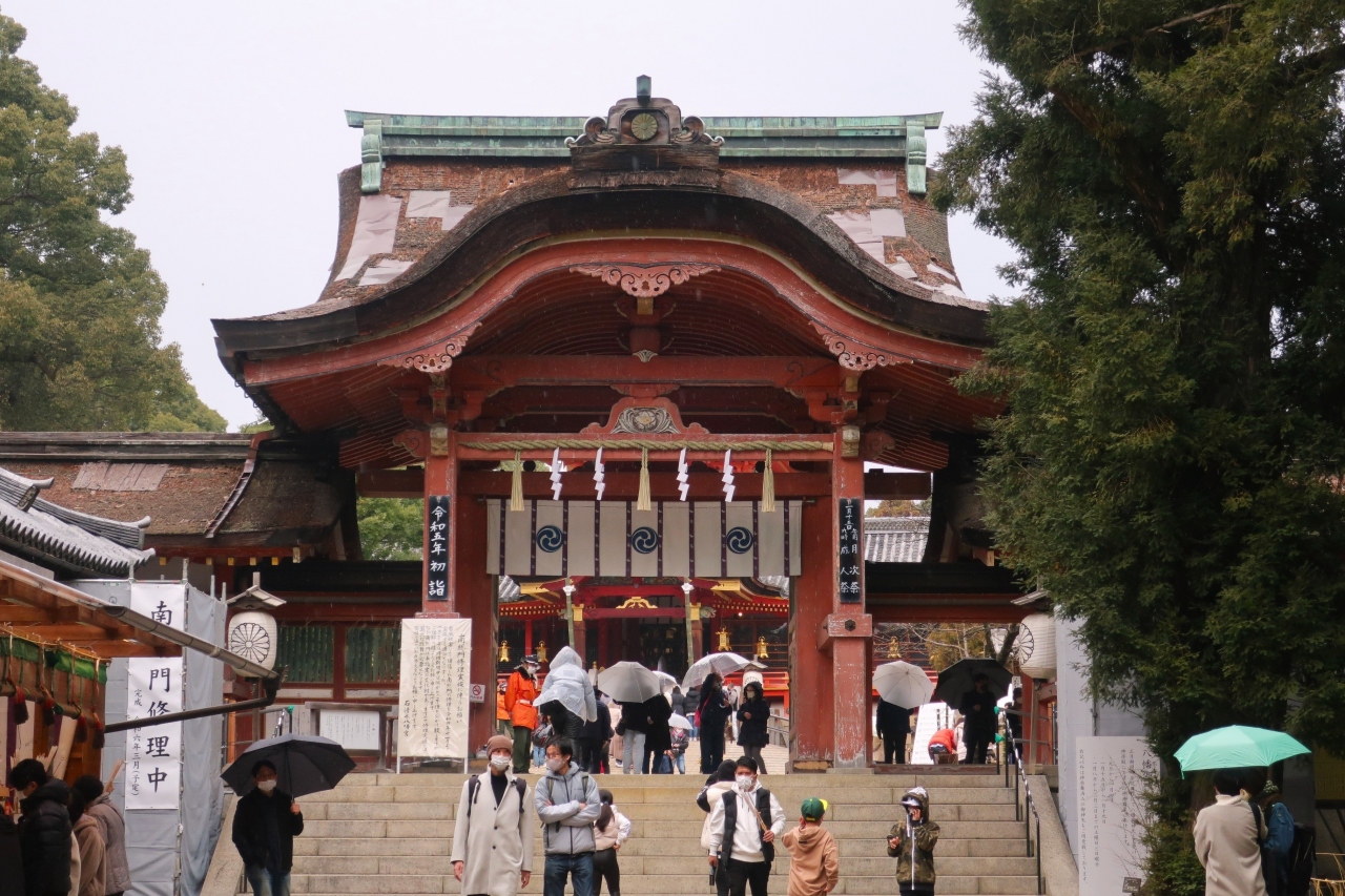 前回の初もうではマイカーで行き、山道の参道を歩いて登った。今回は京阪電車で行き、山頂までケ-ブルで往復した。朱塗りの社殿は相変わらず見事。コロナ後で人出はどうかと思ったが、結構なにぎわいだった。歩いて登った時はわからなかったが、ここの竹をフィラメントに使って電灯の開発に成功したエジソンの記念碑や男山展望台なども楽しむことができた。さらに前回は疲れてすぐに帰途に就いたが、今回は周辺の名所旧跡寺院も見て回った。京阪駅前のレンタル自転車は出払っていて使えなかったが、らくがき寺や飛行神社など門前町に点在する神社仏閣を歩いて回った。自転車があれば三川合流地点などにも足を延ばしただろう。結構な時間消費ができるエリアだと思った。