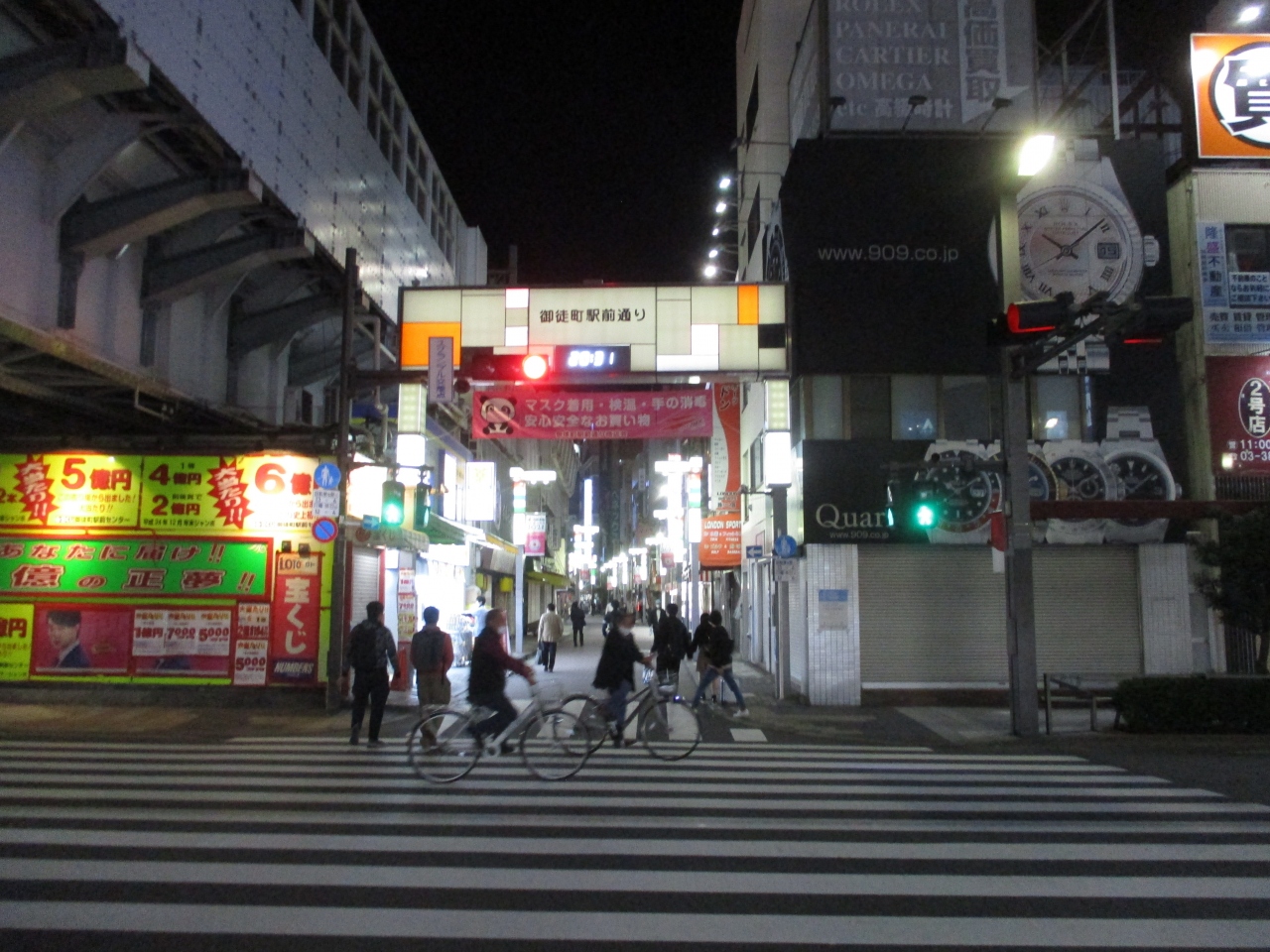 JR上野駅前のマルイシティ上野店西側、上野6丁目の中央を南北に貫いて春日通りに抜ける、上野駅と御徒町駅を結ぶ400mほどの通りです。昼は生鮮食品を中心に営業している店舗ですが、夜は居酒屋さんが営業を開始して、ガードレール下の酒場という雰囲気がありました。