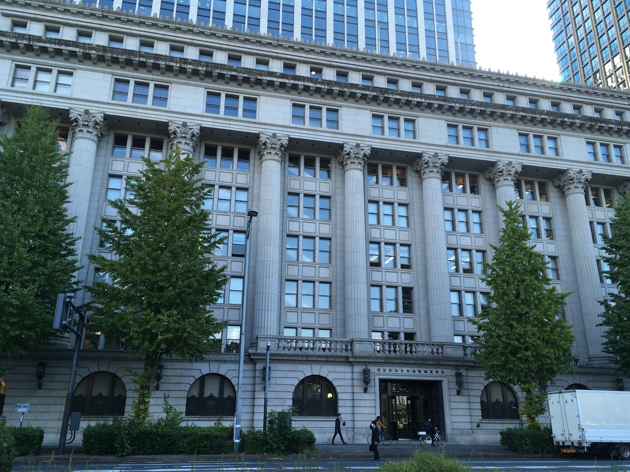 1階では新しくギャラリーで展示がありました。古い絵画や器などが見れるようになっていました。皇居のそばにあるので、大変目立ちました。交通量も多かったですが、タイミングを見計らって、向かいから写真を撮れました。