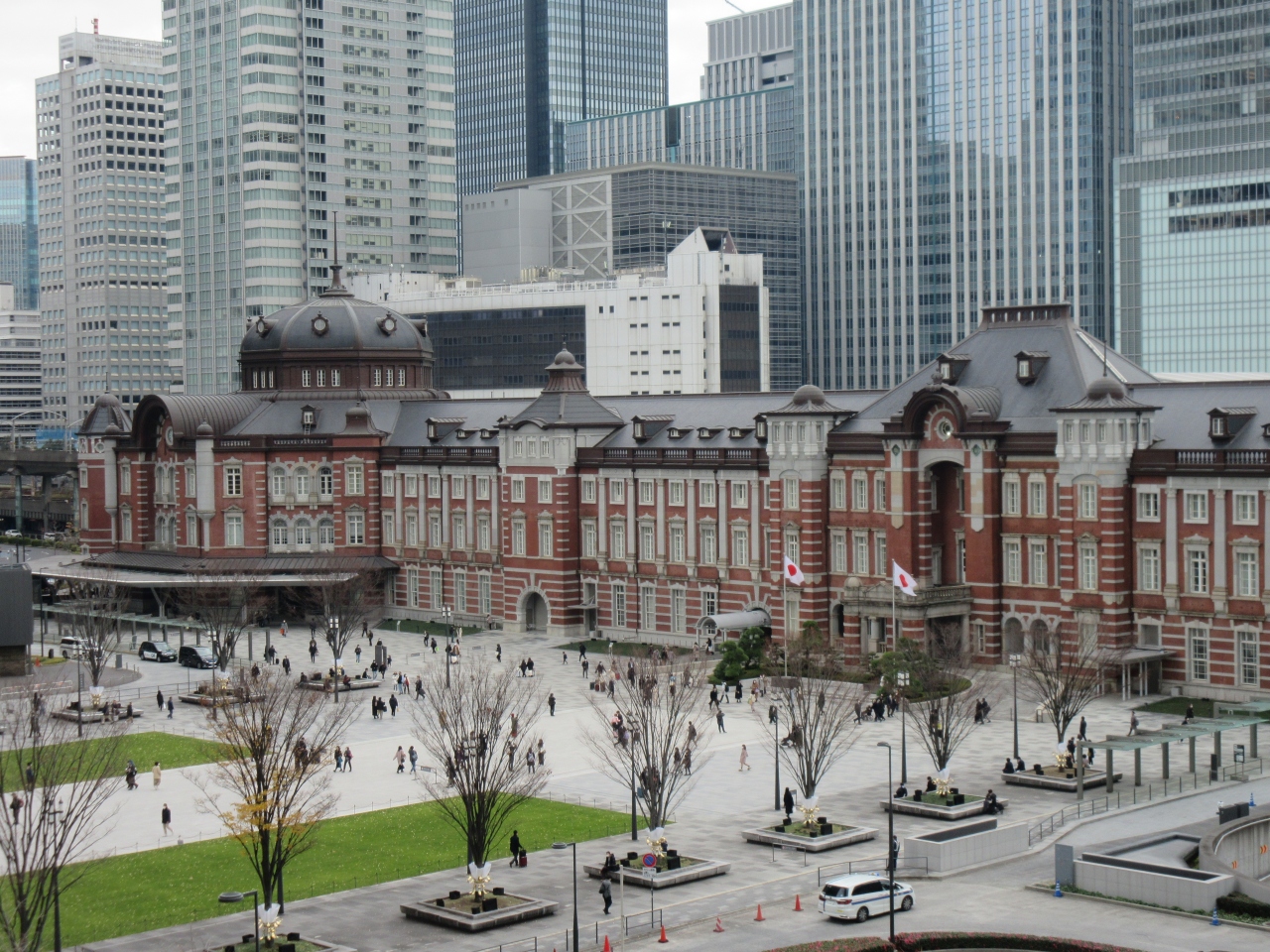 5階展望フロアは、広くはないけど、屋根があるので雨の日でも大丈夫です。東京駅赤レンガ駅舎のほぼ正面なので、良く見晴らせます。
