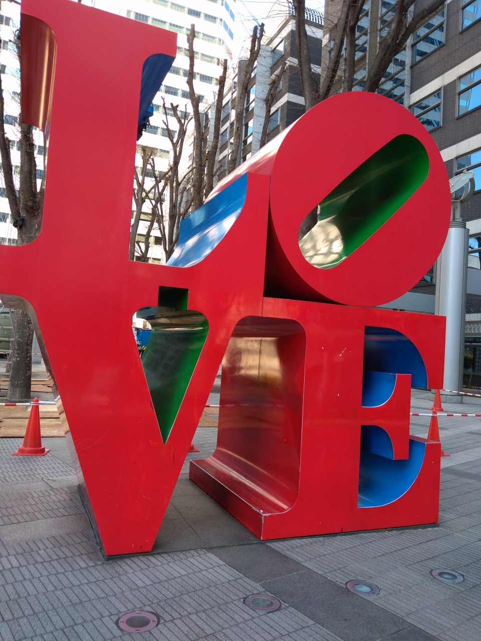 新宿アイランドの正面入り口にあるのが「LOVE」のオブジェ。大きさもあり、赤色で目立つ。アメリカの作家ロバート・インディアナが手がけたものです。ただ西新宿という、新宿からちょっと離れた場所なので、日曜なのでオフィス街なので人もいなくて閑散としていた。