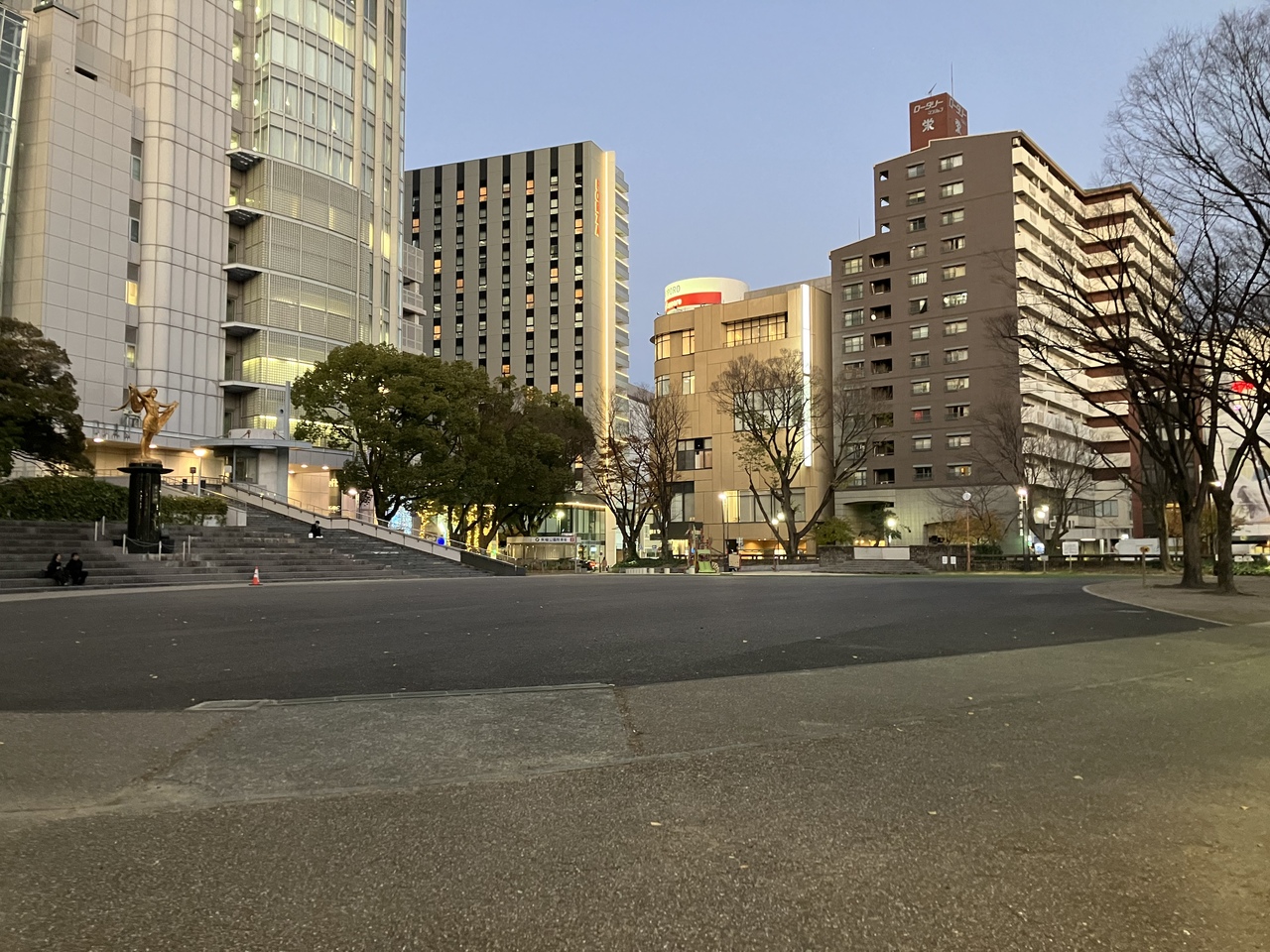 名古屋市地下鉄「矢場駅」から西へ徒歩で5分ほどです。複合施設「ナディア・パーク」の南に隣接する都市公園です。楕円形の広場がありイベントでもよく利用されます。「夢の女神像」がナディアパークの2階につながる広い階段中央に立っています。地下は駐車場になっているようです。
