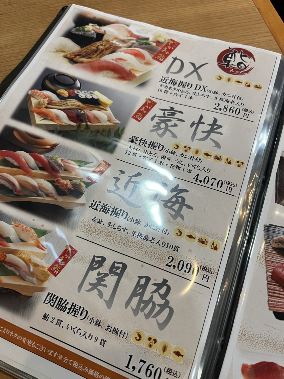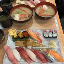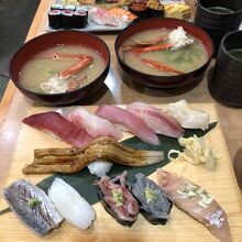 羽田空港2ターミナルに入る寿司店です。14:00過ぎに来店しましたが、混雑していて入店まで少し待ちました。近海握りDX(2,860円)と豪快握り(4,070円)を注文。ネタが大きくて、満足感がありました。また、小鉢とカニ汁もセットになっていて嬉しいです。