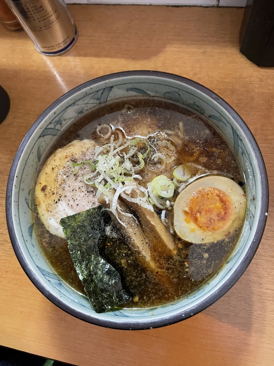 煮干し系のスープの上に油がコーティングされたとても美味しいラーメンでした。