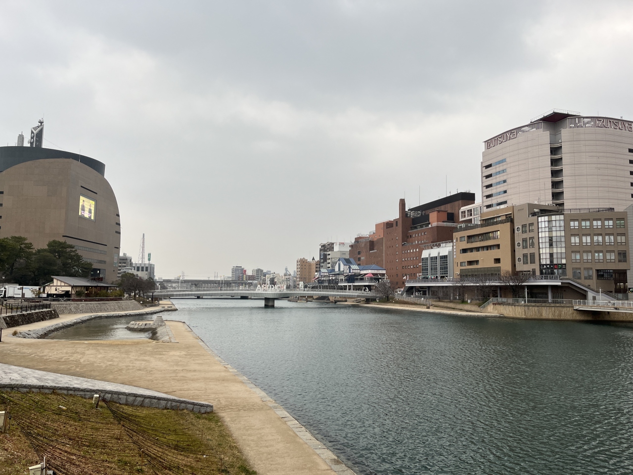 小倉城の東側を流れている川で、個性豊かな橋がいくつかかかっています。川の近くは歩きやすいように整備されていて、散策が楽しめました。周囲にはいろいろなテーマの博物館があるので、興味にあわせて見てみてもおもしろいと思います。