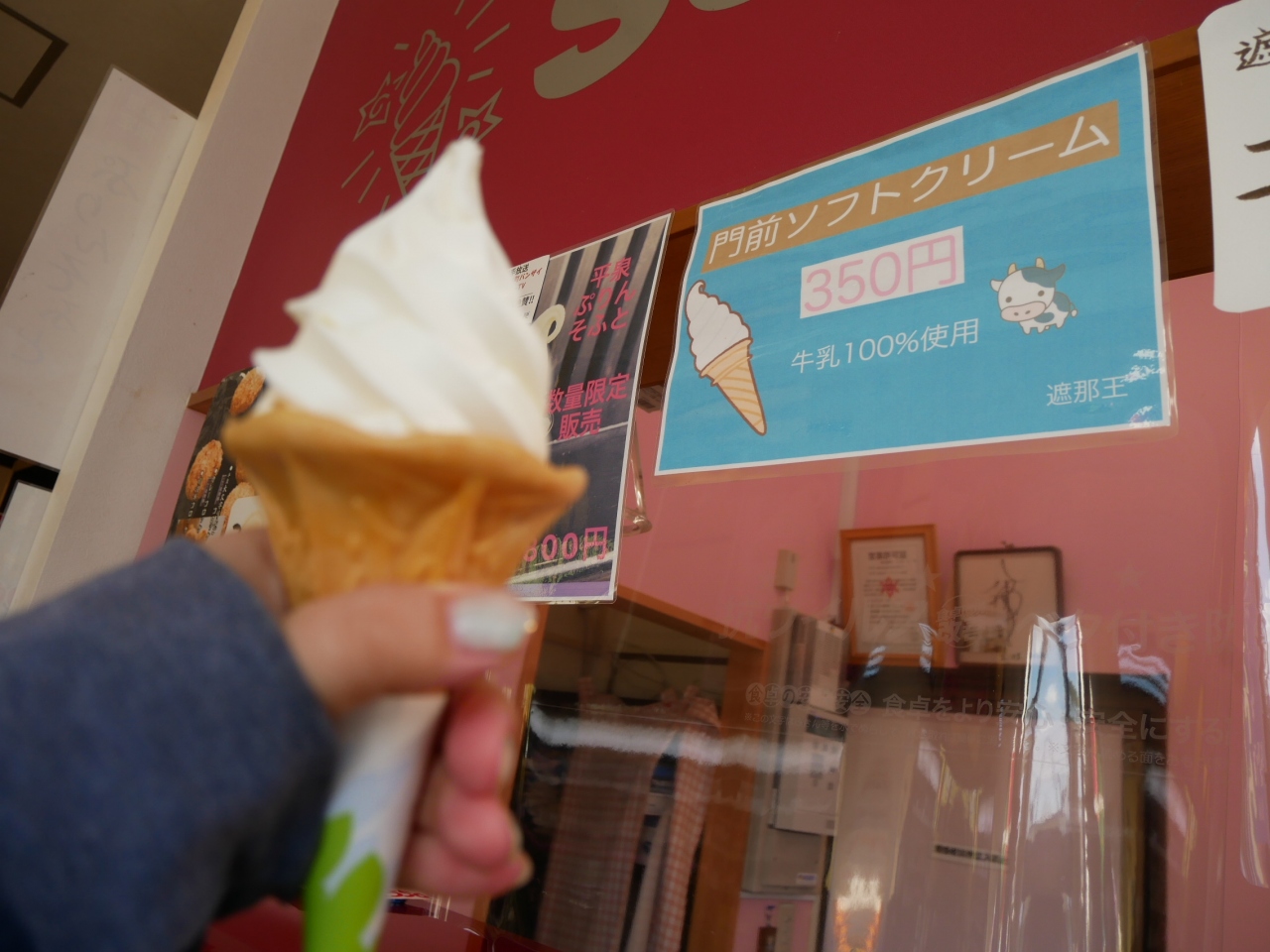 お土産はもちろん売っていますが、門前ソフトクリームも売っていたので思わず購入。