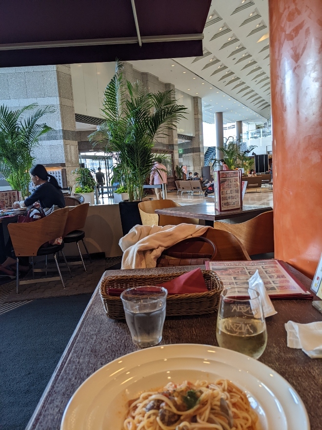 アパホテル1Fにあるイタリアンです。壁がないので外からは丸見え(観葉植物などを配置し、一応目隠しはされている感じ)だけど、セントラルタワーの端っこにあるので、意外と目立たないかもしれません。石窯で焼き上げるピザが人気のようです。