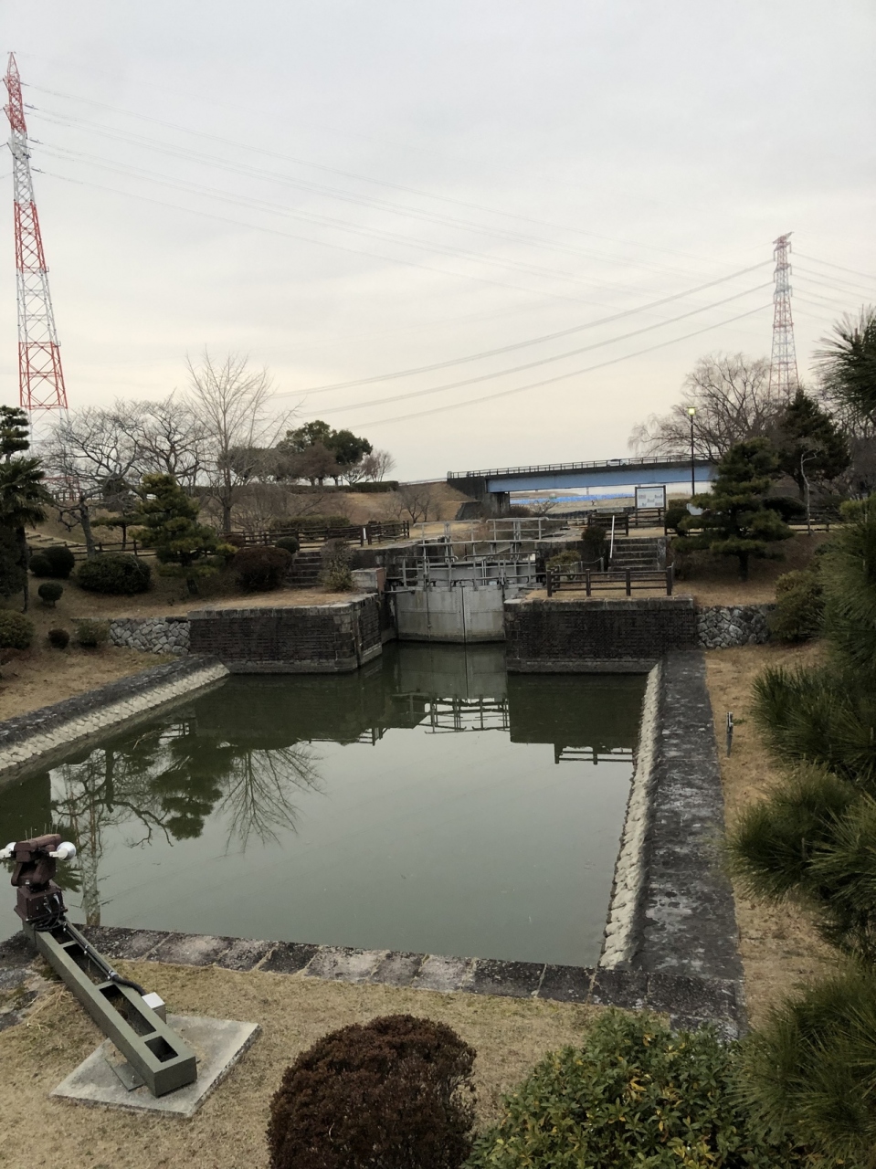 明治時代にオランダの技師により作られたもの。昔は繋がっていた木曽三川ですが、木曽川と長良川の分流工事が行われた際、水位差が生じる両河川間の舟運確保のために設けられた水路閘門です。