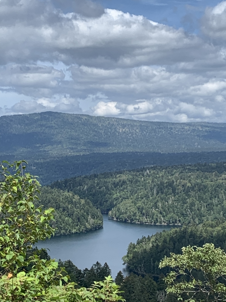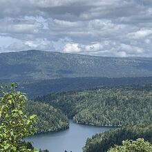 阿寒温泉から帰る途中、横断道路沿いに展望台があり見学しました。パンケトーとペンケトーと名付けられた2つの湖と雄阿寒岳が綺麗に見えました。双湖台からのペンケトーは、北海道のかたちに見えることで知られています。晴れていたので綺麗でした。