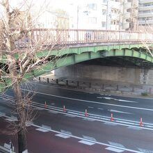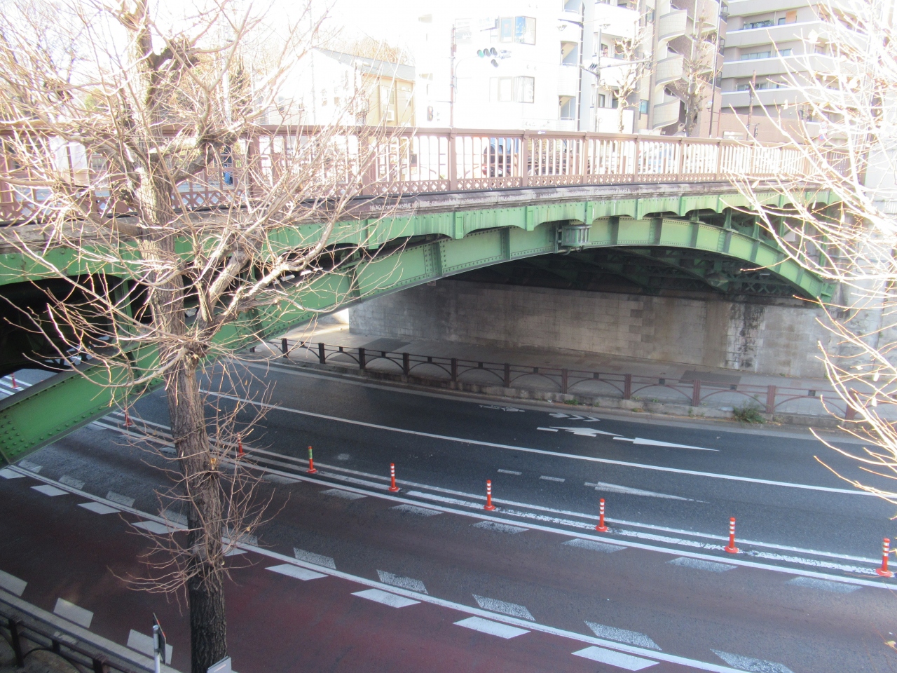 都電荒川線・鬼子母神前駅から学習院下駅方向に150mほど行った、明治通りに架かっています。目白通りの一部で、明治通りとは立体交差になっていて、日本で初めての道路の立体交差で、橋の下には都電も走っています。目白通りから明治通りに降りる歩道と車道が設置されています。橋には当時土木部長として、都市計画案を策定し千登世橋を架橋した来島良亮氏の像も建っています。2本の道路とも交通量が多く、立体交差になっていることで交通渋滞が緩和されていると思います。90年程前に架けられた橋ですが、先を見通した工夫が感じられる橋です。