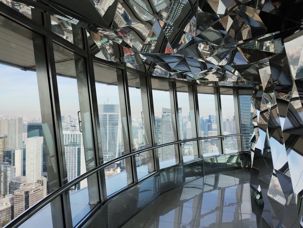 着いた場所は、プラットフォームと呼ばれる空間、ドリンクサービスとフォト撮影(購入は自由、白黒の写真はもらえます)後、再び、エレベータでトップデッキ(250m)へ。