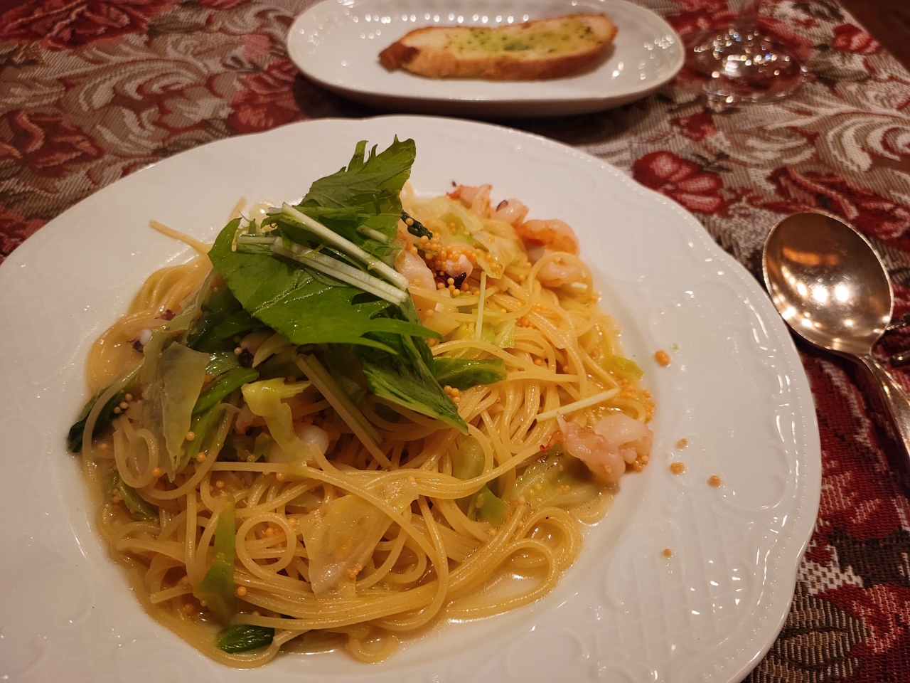 オイルベールのパスタでしたが、水っぽい。湯切りが甘い気がしました。
