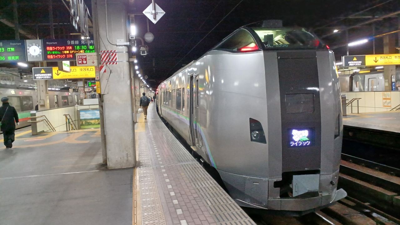 12月末に札幌18時30分発のライラックに乗ろうと札幌駅のホームに向かうと、なんと789系1000番台がいました。