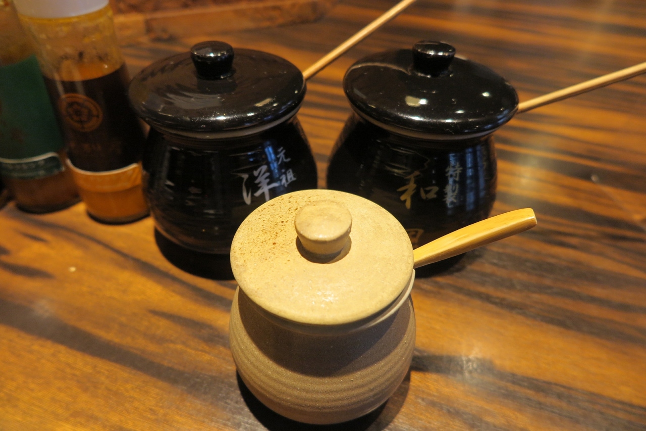 - 最初に給される高菜、オリジナルドレッシング、手切りのキャベツまで全部おいしかったです