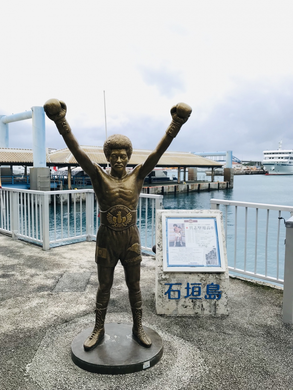 離島ターミナルの船着き場前に、石垣島のヒーローでありボクシング世界チャンピオンの「具志堅要高」さんのブロンズ像があります。