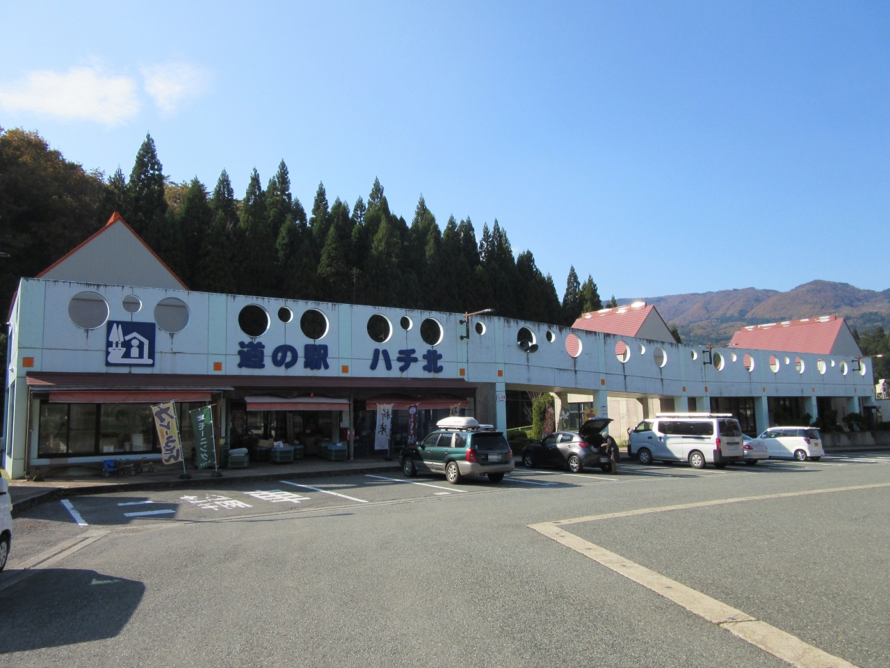 道の駅をチェーン脱着場にしているのでは無く、恐らくはチェーン脱着場が発展して道の駅になったのだと思われます。なので広大な駐車場(脱着場)に対して建物は小さめです。