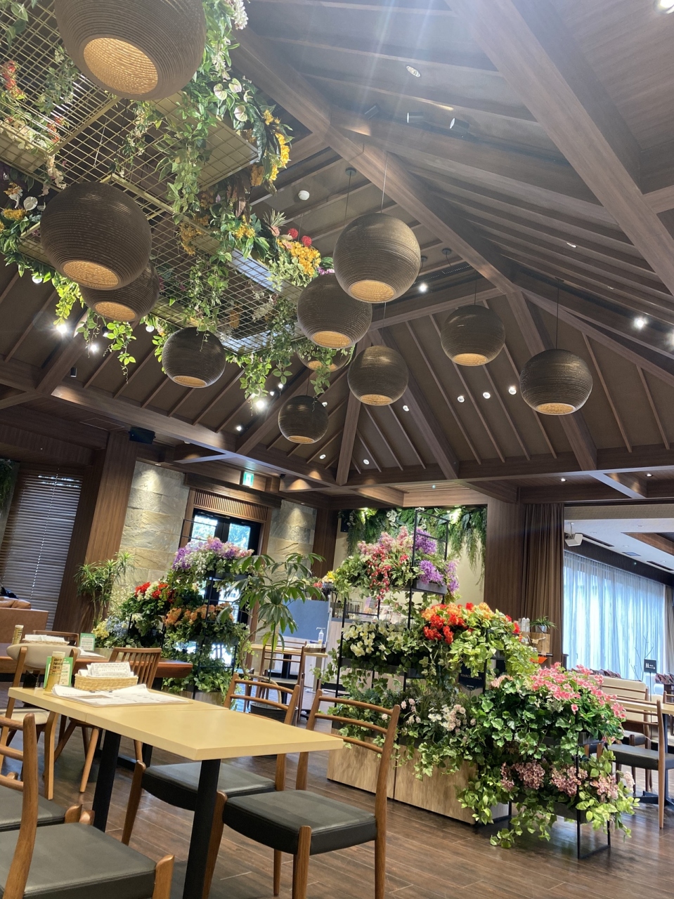 座席間隔がゆったり取られてるので隣の会話は聞こえません。天井も高いので広く感じます。