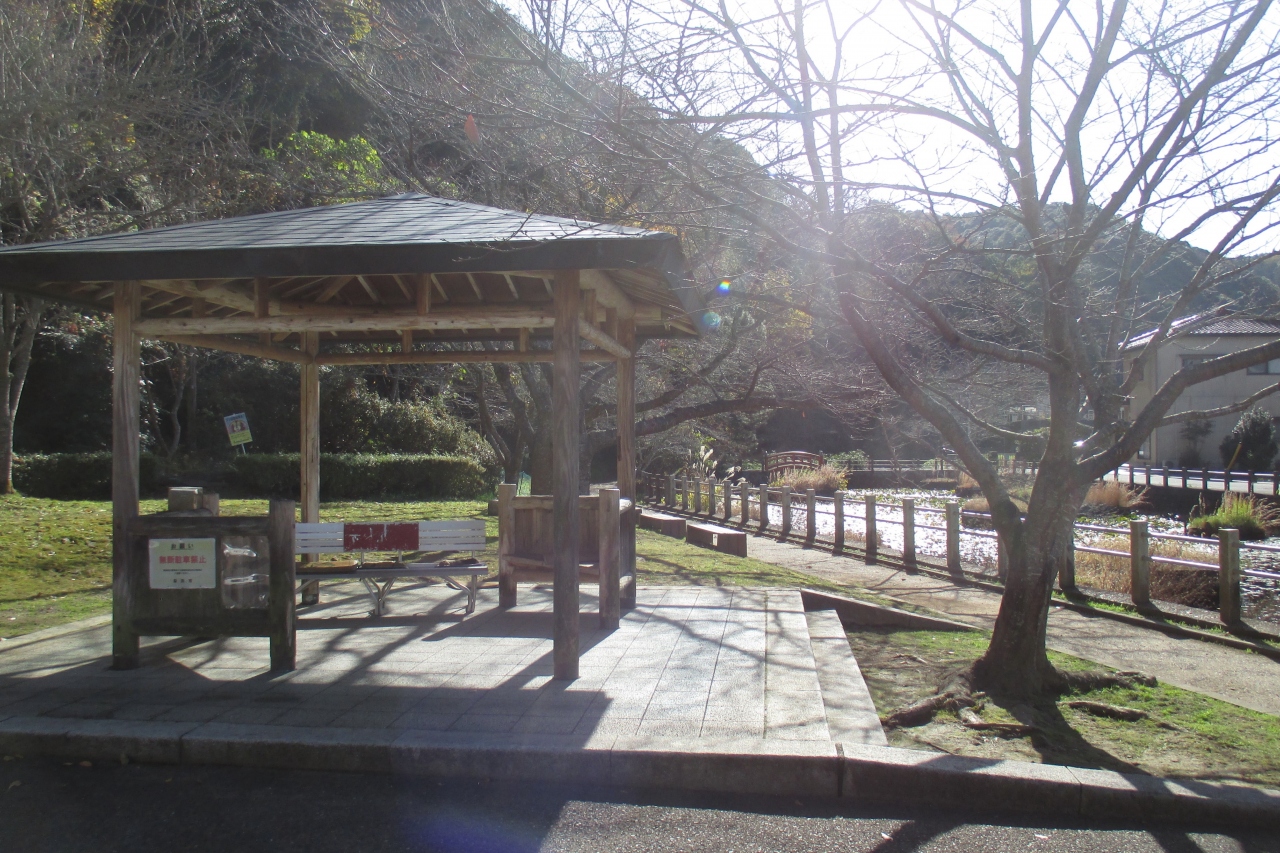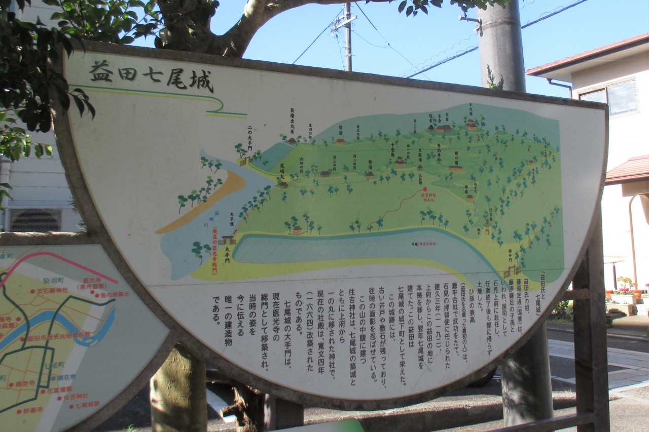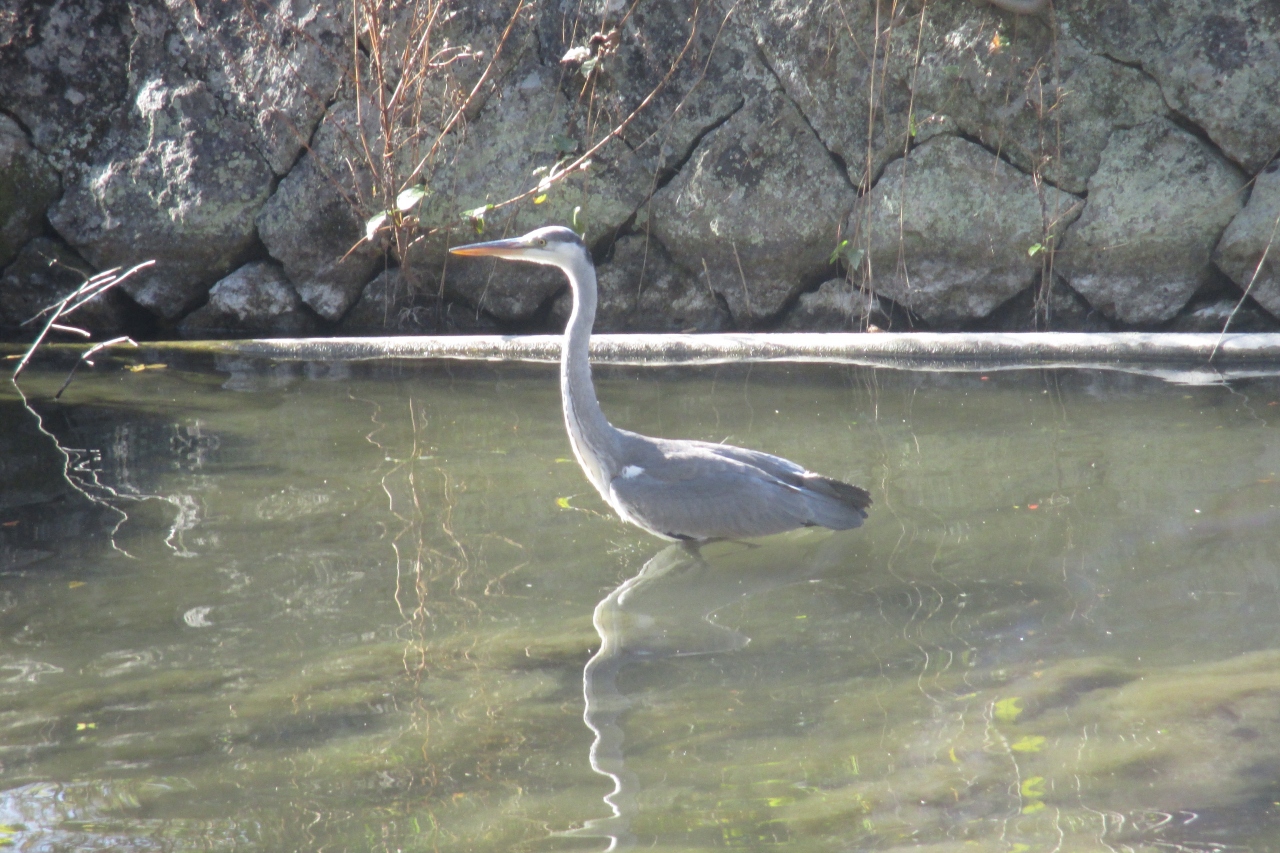 七尾公園は益田氏が益田を治めていた時、七尾城のあった山のふもとのにありました。訪れた時は人影がまったくありませんでしたが、桜の木がたくさんありました。春には多くの人が訪れる花見どころなのだろうと思いました。水辺にはアオサギがいました。近くで見るとなかなか大きな鳥なのですね。