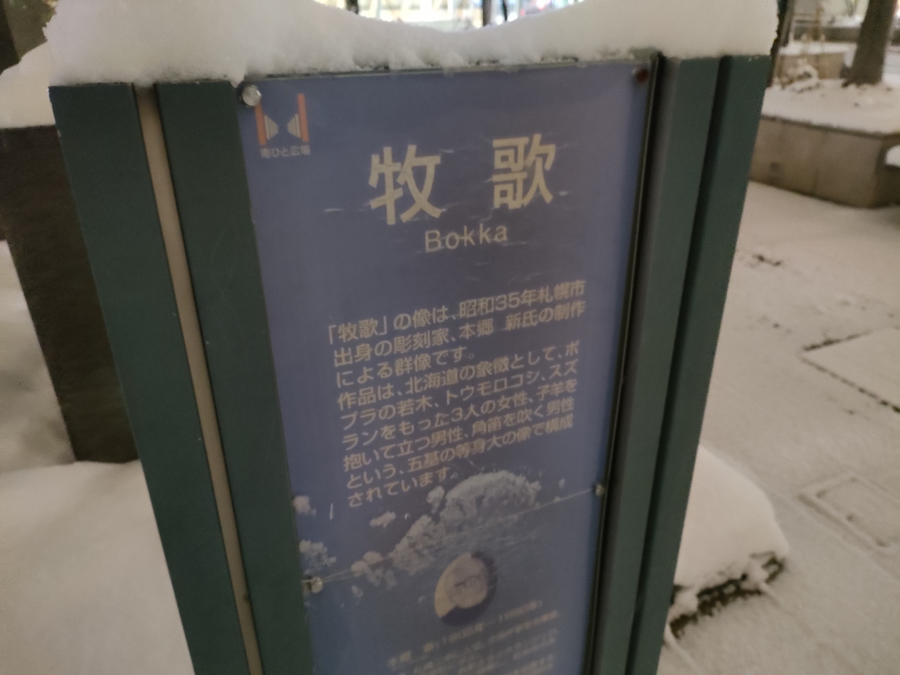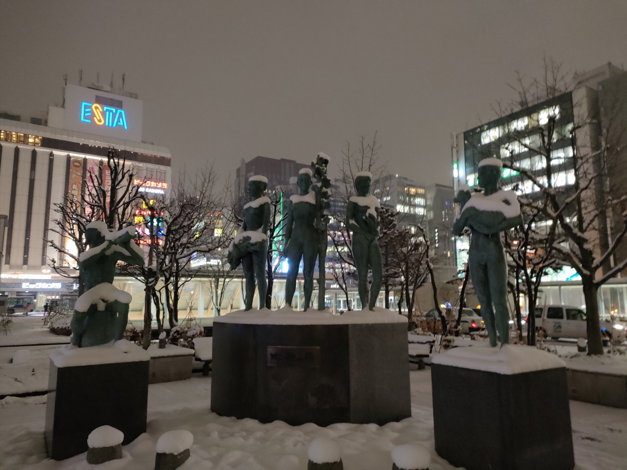 札幌駅南口の駅前広場の一角に佇む像で、札幌出身の彫刻家、本郷新氏の作品です。