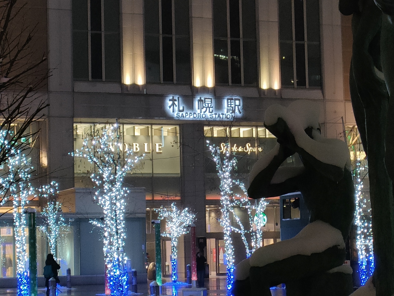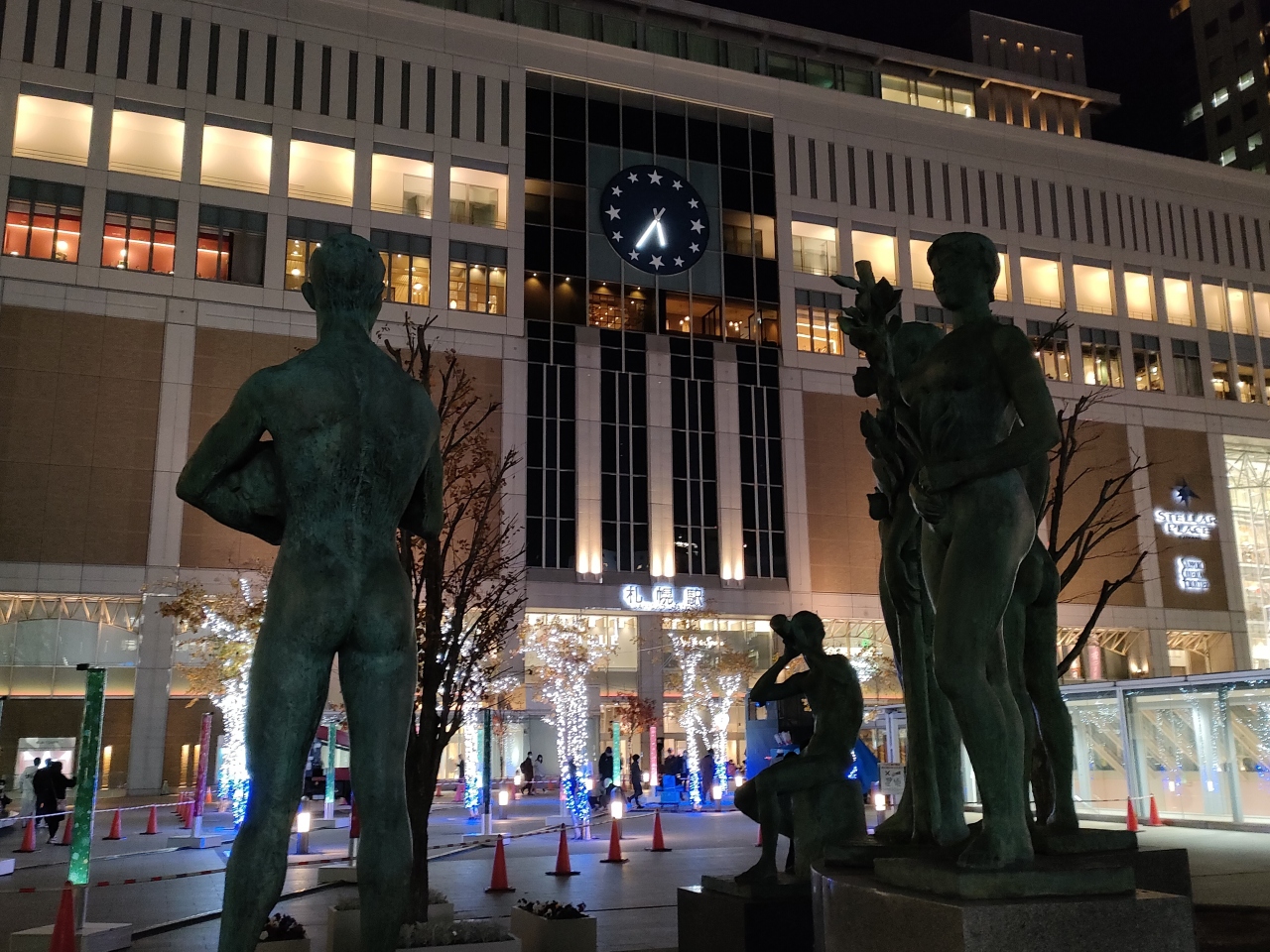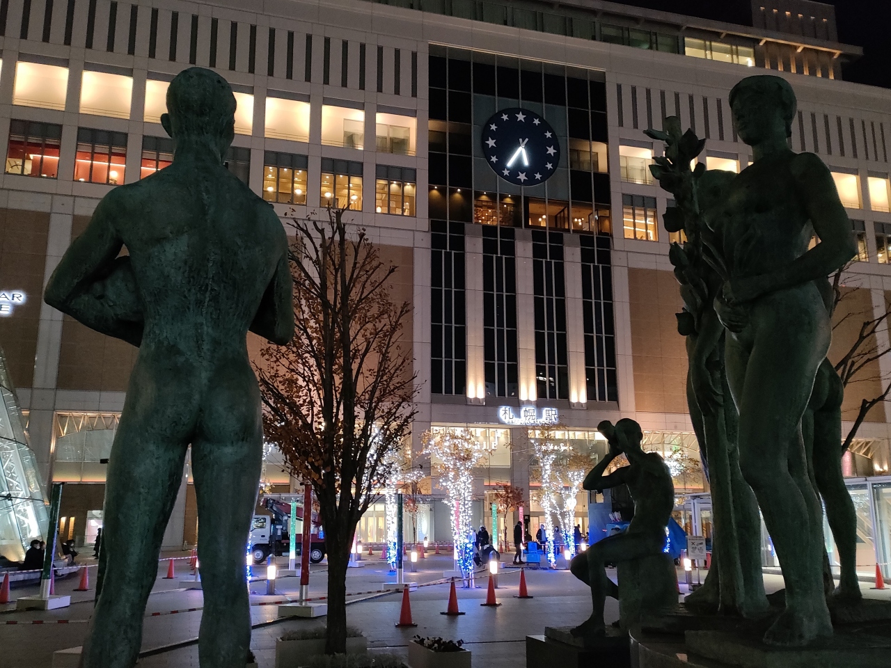 11月に像の辺りを訪れた時には、きれいなイルミネーションの飾りつけがあって、像付近はやや暗くなっていたものの、背景によく映えていました。