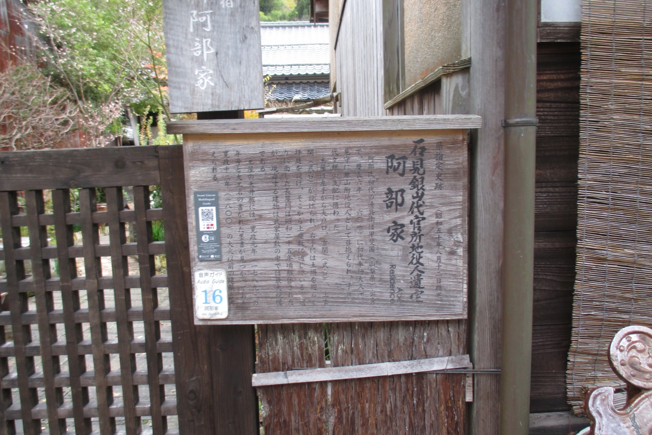阿部家は、親類の宗岡家と並んでいますが、こちらは代官を補佐する様な上級武士だったので大きなお屋敷です。江戸時代は長屋門もあったそうですが、今は失われています。1800年(寛政12年)の大森の大火を免れたので、古い家屋の1つなのだそうです。現在は、近くにある群言堂が「他郷阿部家」という宿泊施設としています。他郷はもう1つのふるさとといった意味だそうです。