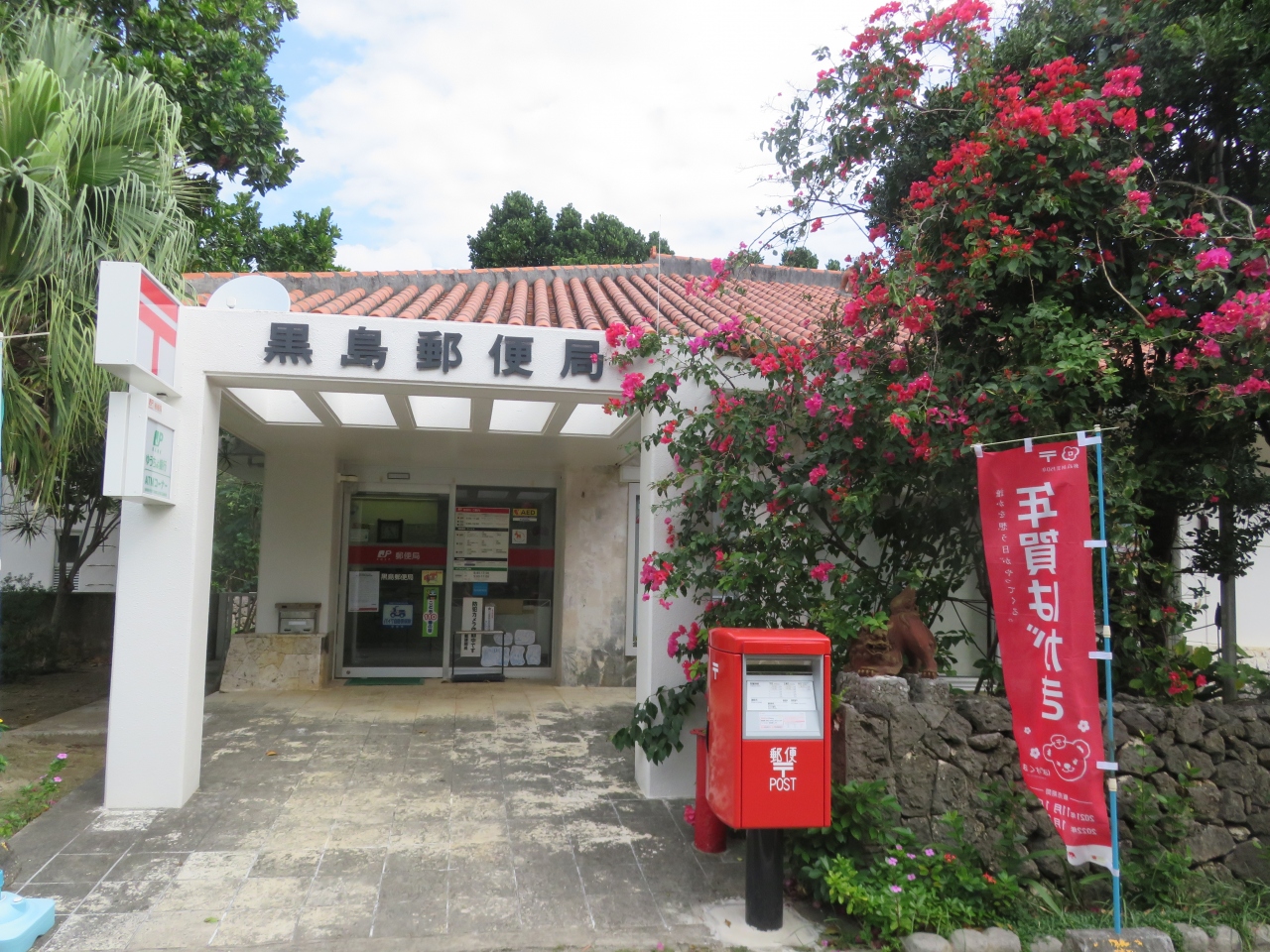 東筋集落にあり新しい建物ですが赤瓦でシーサーがいたりと沖縄らしい。島唯一の金融機関で、ATMもあり手持ちのお金がなかったらこの郵便局を利用することになりますね。とはいえ黒島でお金をたくさん使うようなところはあまりないので私は郵便局の前を通り過ぎるだけでした。