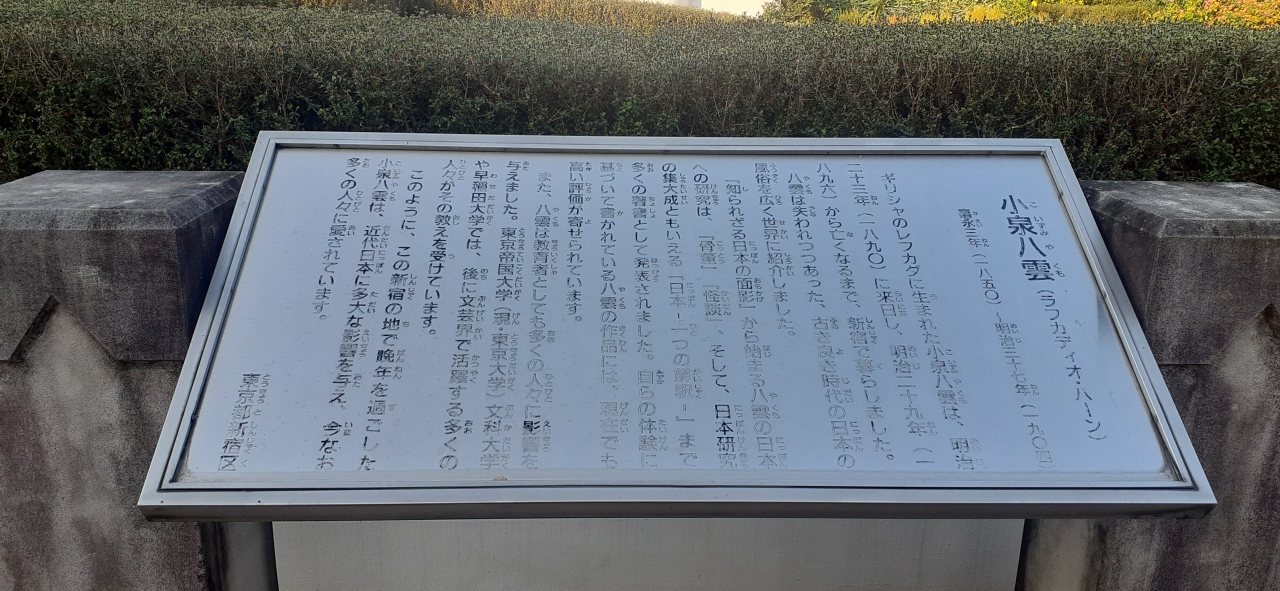 小泉八雲がこのあたりで亡くなったことを記念した公園です。