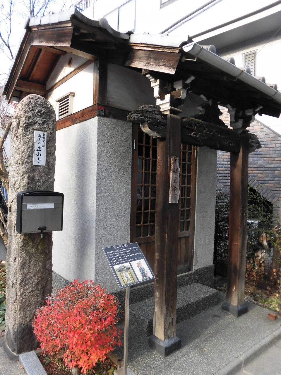港区の魚籃阪近辺を散策しているときに立ち寄ったお寺です。こじんまりとしたお寺ですが、境内に入ると静かな空間が広がっていて、心が癒される気がしました。本堂近くには確か日本に拳法を伝えたといわれる方の碑や、鳥枢沙魔明王が祀られている小さなお堂もありました。