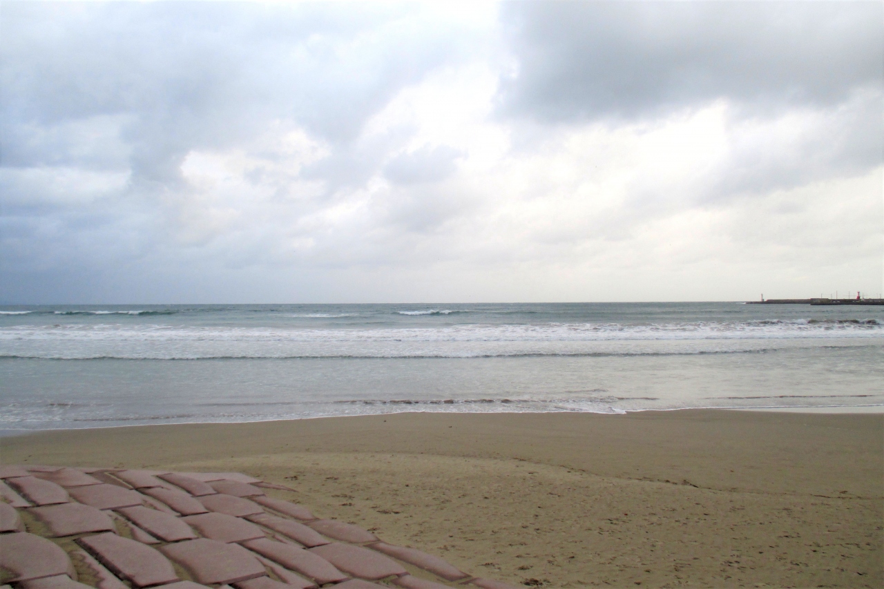 稲佐の浜はきれいな砂浜が拡がっていました。稲佐は古くは伊那佐と書いていて、伊那は砂浜のことだそうです。ず~っと昔から砂浜の綺麗なところだったのでしょうね。訪れたのは11月の終わりだったので、すでに神在祭は終わっていましたから、稲佐の浜は一段と静かな浜になっていました。全国から集まっていた神様は皆さんここからお住まいに帰っていったのでしょうね。神在祭の間であれば、ここは神様の乗り物で埋まっていたのかなぁ・・・なんて、おとぎ話の様な気持にしてくれるところでした。