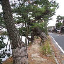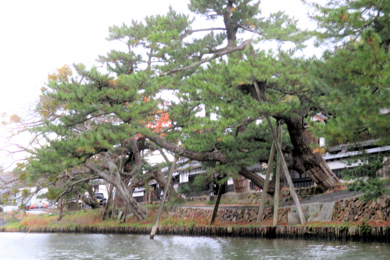 塩見縄手は、小泉八雲の旧居や記念館など松江の町観光のメインとなる施設の集まっているところでした。塩見縄手そのものの観光としては、お濠沿いの遊歩道にある大きな松の並木で、特に、垂れ下がった枝を腰を屈めて潜り抜けるところです。遊歩道の方を低くしてありましたが、お濠の遊覧船から見ると、遊歩道の下がり具合がより一層分りました。