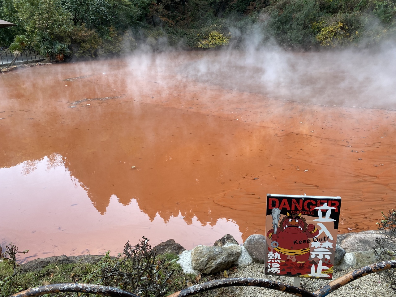 赤茶けた色の温泉が湧き出る地獄