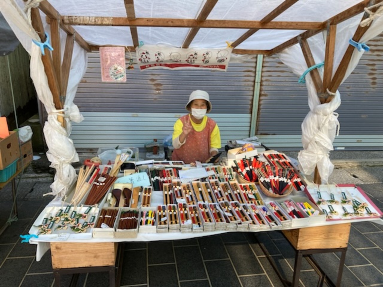 朝市のお土産として、輪島塗のお箸を買いました。天然漆を塗ったものと、合成漆を塗ったものではお値段が違いました。せっかく輪島に来たんだからと奮発して、本塗りのお箸を購入しました。