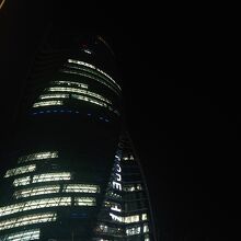 1月中旬の週末の午後6時台に訪問しました。そして、ミッドランドスクエア側から、「スパイラルタワーズ」を眺めました。使用中と思われる部屋の窓から漏れる灯りが、良い雰囲気を醸し出しており、昼間とは違った姿が見られ、良かったです。