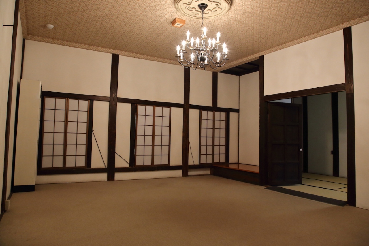 旧三省銀行という名前の通り、元々は銀行として開業したようですが直ぐに倒産し、その後は長く診療所として使用されていたようです。煉瓦造りの旧古賀銀行とは異なり、完全に日本の蔵造りですが、入り口から直ぐの広間はかなり広く、銀行業務をやっていたのかな、と思わせますし、2階にはシャンデリアが吊るされた洋風の部屋もあります。時間があれば足を伸ばして見学しては如何でしょう。