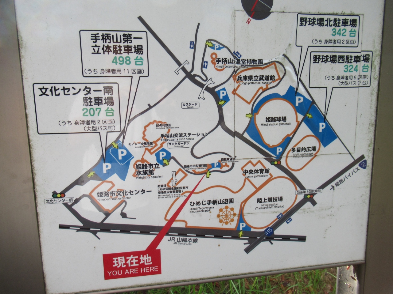 姫路市平和資料館は、兵庫県姫路市のJR姫路駅の南側に位置する手柄山中央公園の山の上にあります。