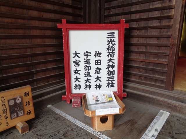 猿田彦神社と同じ敷地内にあります.猿田彦神社が少し地味なのと比べると,こちらの三光稲荷神社はカラフルです.先ず,小さな鳥居が沢山あって,絶好の撮影スポットになっていました.また,ハート型の絵馬が飾ってあり,こちらも外国人観光客が盛んに写真を撮っていました.やはり稲荷神社という特徴が出ているのかも知れません.御朱印は500で受け付けてくれました.