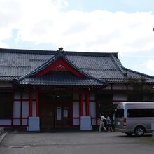 朱色の立派な駅です