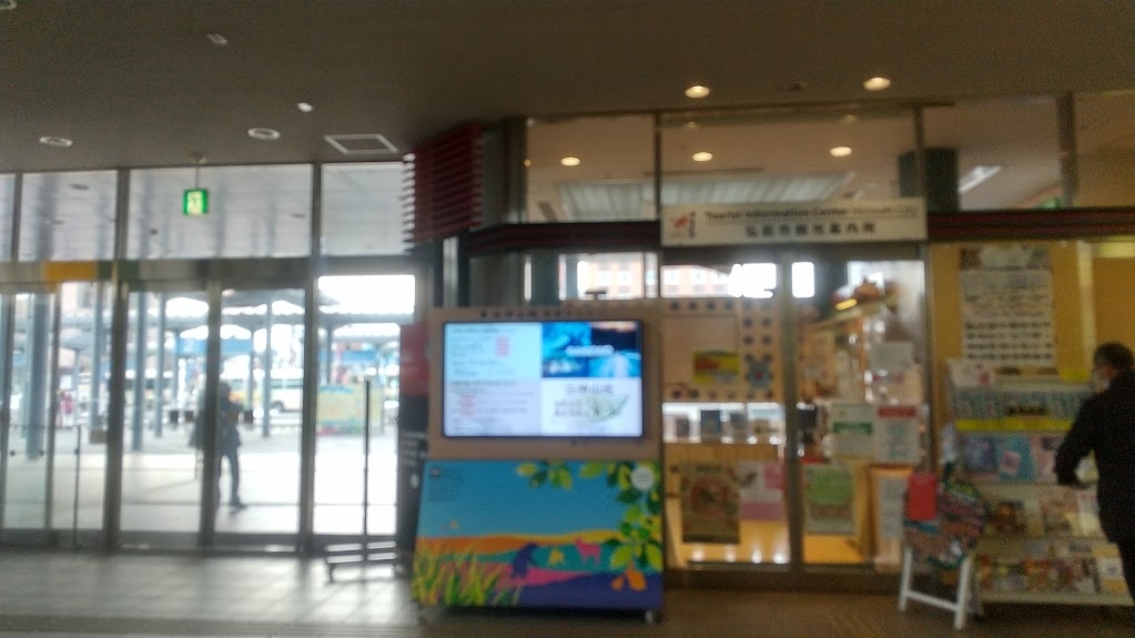 弘前駅1階にある観光案内所です。弘前駅から中心部や弘前城までは少し距離がありますが、街並みを見ながら歩いても行け、100円循環バス、路線バスなどいろいろな行き方があるので、観光案内所では好みに応じていろいろなプランを教えてくれます。