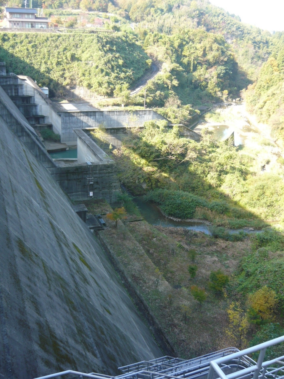 ダムに水が溜まっていないのが不思議に思い、ダムサイトにあった説明板を見ると『流水型の洪水調節専用ダム』とあり、とても珍しいと思いました。堤体上は車で走ることができます。ダムカードは金沢市内にある「石川県土木部河川課」に頂くことができますが、辰巳ダムに行ったことを証明する写真が必要です。なお、犀川ダムのダムカードも頂けるので犀川ダムも合わせて観て回った後、訪問すると良いでしょう。