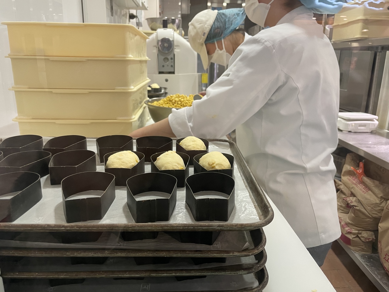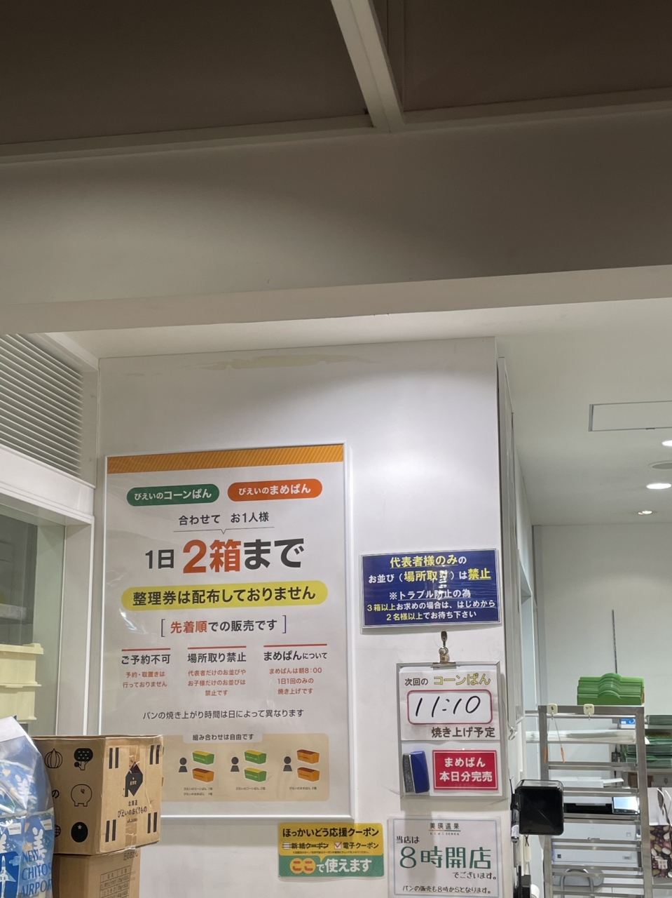 以前は来店した際は時間がなくて購入できなかったコーンパン。今回リベンジです。30分ほど並びました。予定の焼き上がり時間より少し早く販売はじまりました。