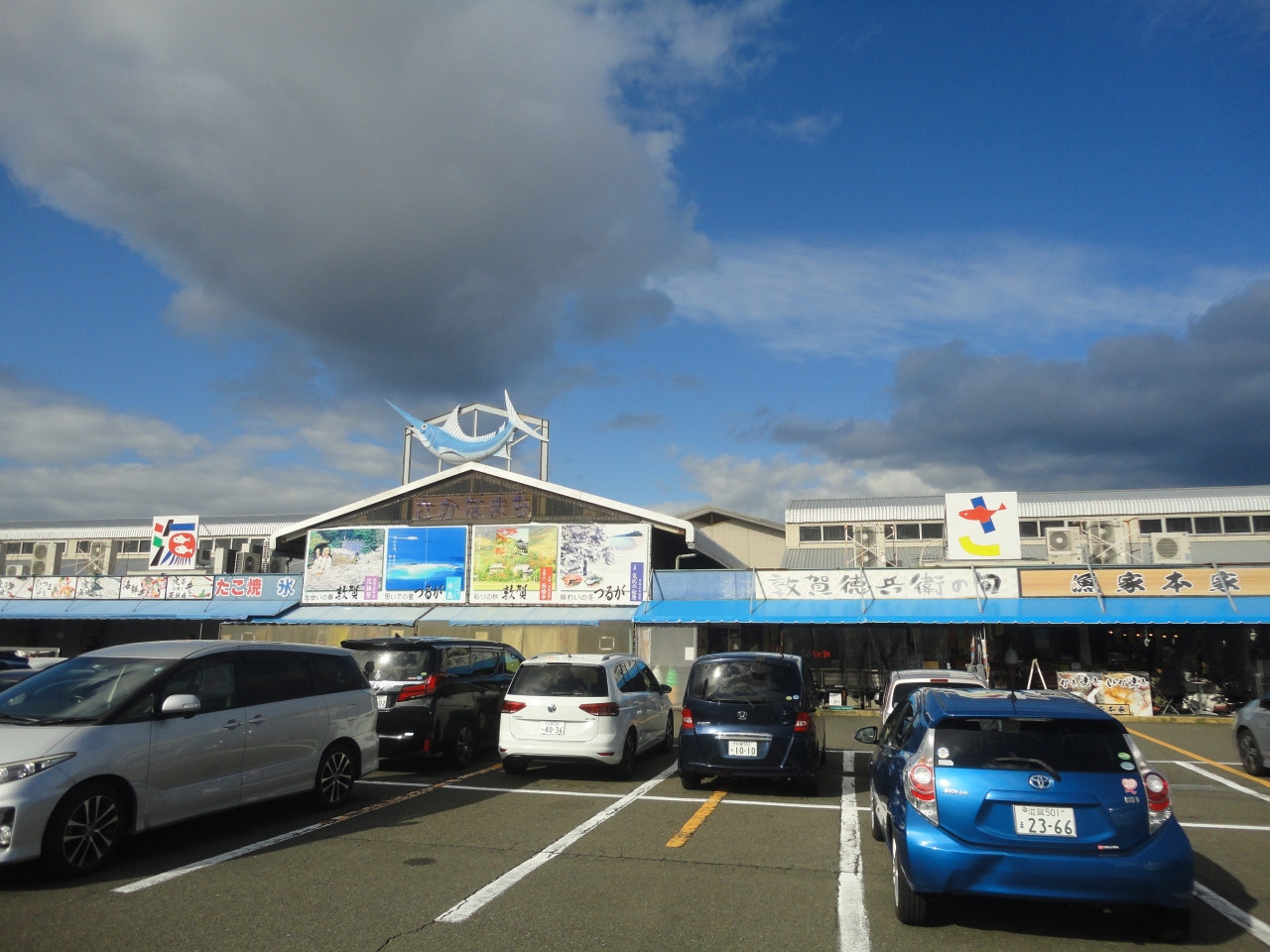 ランチで立ち寄りました。もっと海に近い場所にあるかと思っていたのですが、敦賀駅からそれほど遠くない幹線道路沿いにありました。お土産店と飲食店が並んでいて、どのお店で食べようかと見てみたら、同じメニューのお店がいくつかあって、意外と選択肢が少なく感じました。観光に疲れていたので、奥の広いお店に入って、寛ぎました。