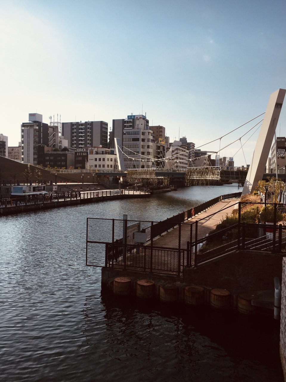 心斎橋等、大阪中心街を流れる川で、訪問した場所は川幅が短かったです。川の左右はリバーウォークのようになっていて、川と道沿いの位置はあまり変わらない感じで川を横に見ながら歩きましたが、川の水は濁っていました。