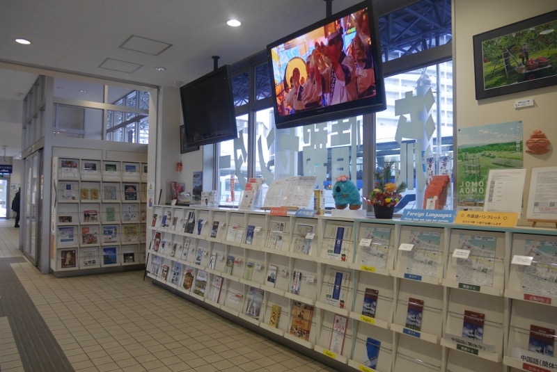 JR青森駅すぐのところにある観光案内所です。市の観光情報が多く集まり、また有人です。がしかし、パンフレットの量ならここから少し歩いたところにあるアスパム内のほうが圧倒的。同じ建物(扉なども介さない地続き)にバスセンターも入っていて、観光の拠点となります。