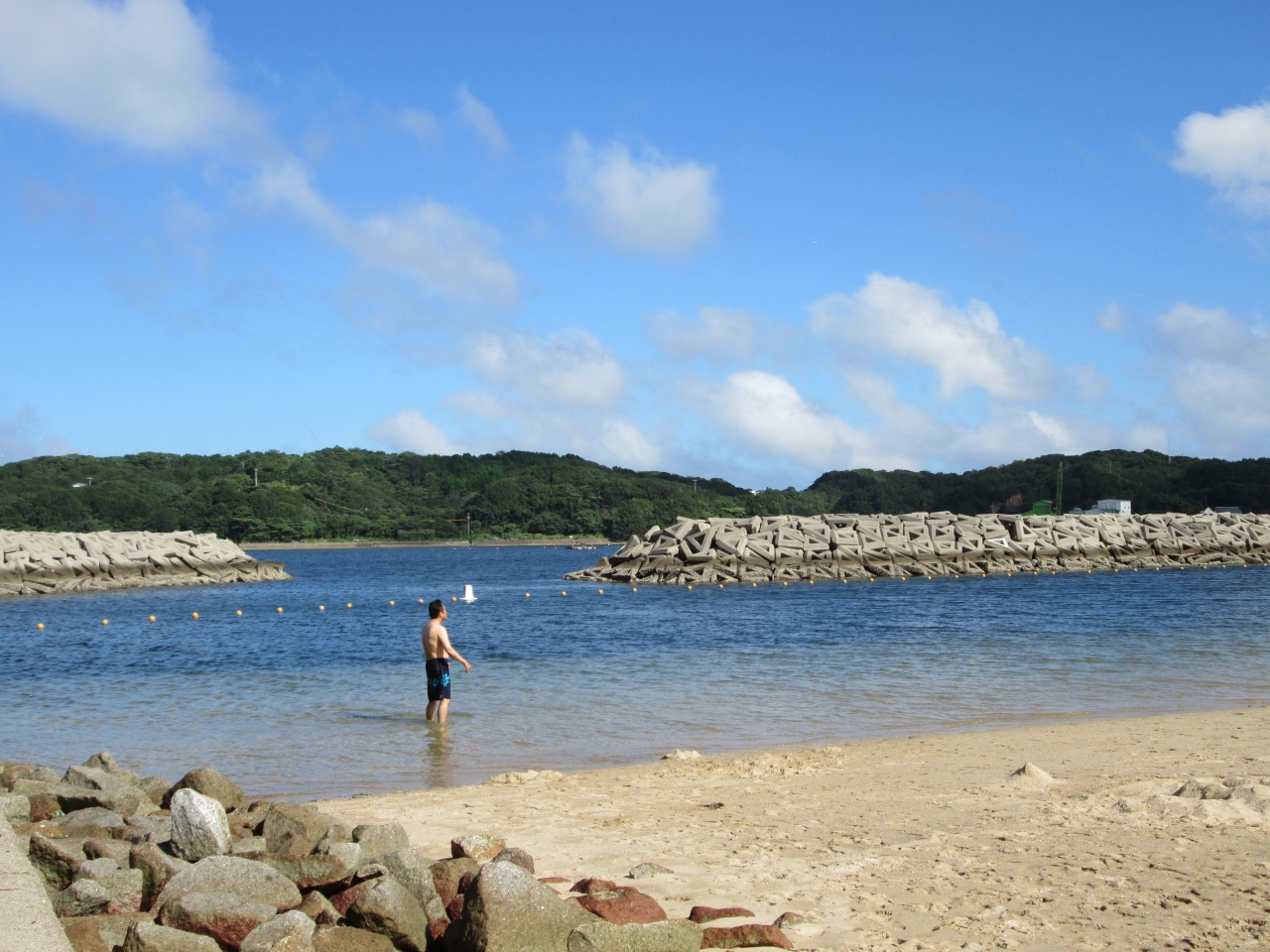 はいふうから少し奥に行ったビーチです。ヤシの木が植樹され、円弧型にレンガが敷かれた砂浜は、欧洲のリゾートを思わせます。海の水は大変きれいです。他に何もない離島の海水浴場なので、最高の立地ですね。7月なのに少し寒かったです。