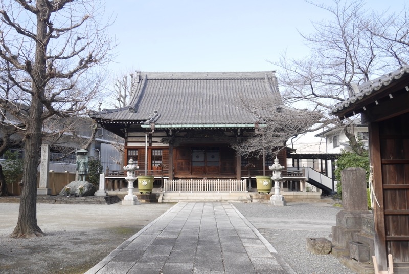 いつも入ることのできるパターンのお寺ではないようです。赤羽駅からちょっと歩いたところにあり、敷地の外壁前にはお寺についての説明書きの立て札が。どうやら北区の文化財に指定されているようです。また、門の外にお地蔵さんがあり、こちらはいつでもお参りすることができます。