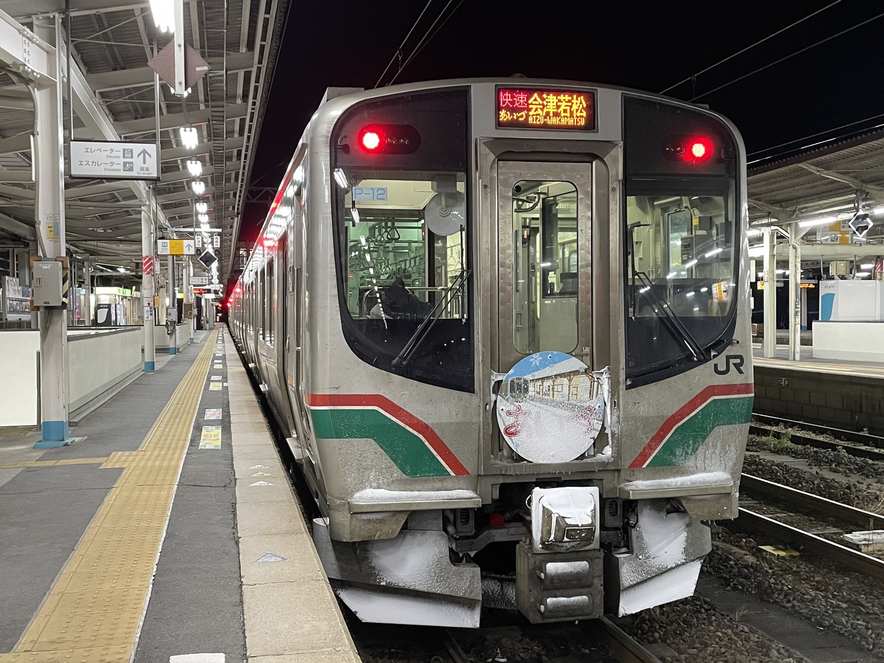 日曜の夜、郡山から会津若松まで利用しました。一部の列車は快速「あいづ」となっており、停車駅は限られ、一部指定席もついています。かつては喜多方まで直通する列車も多くありましたが、今はすべて会津若松のりかえになっていました。