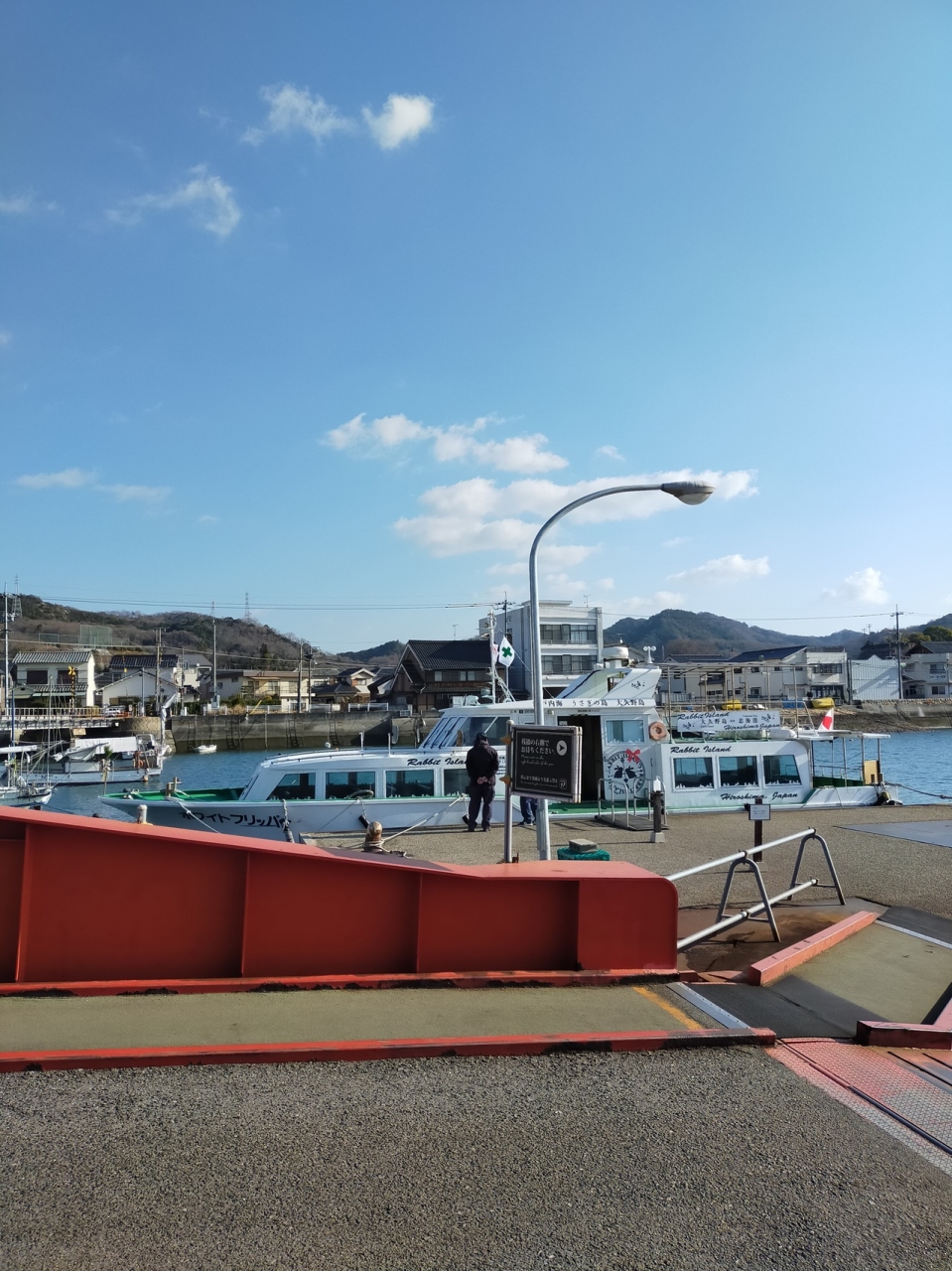 うさぎの島、大久野島へ行く際のフェリー利用で、忠海港を利用しました。広島からのバスで、駅までついたら、港までは少し距離がありました。