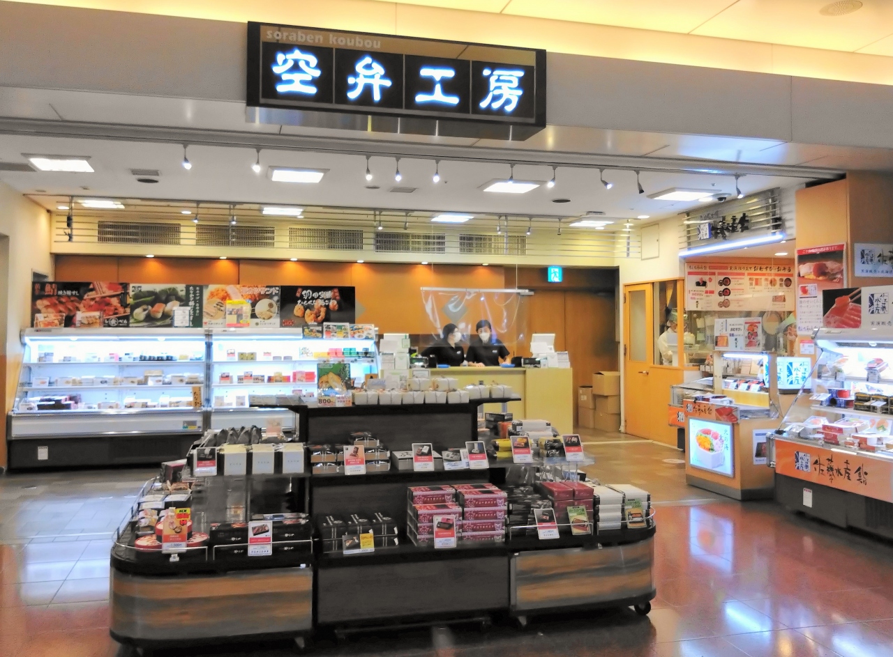 「空弁(そらべん)」の専門店で、多種多様なお弁当が並んでいて迷います。