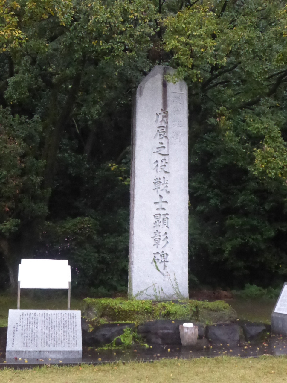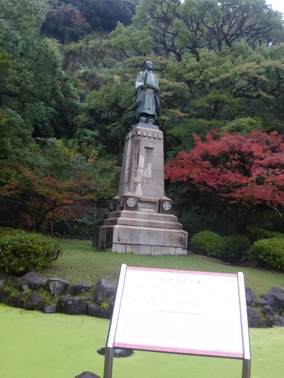 照国神社のすぐ隣に探勝園跡があります。探勝園は鹿児島城の二の丸跡で、島津家第25代当主重豪公が建立した庭園です。明治維新に大きく貢献した島津久光公・忠義公父子の銅像があります。他にも色んな記念碑が建っていて一つ一つ見て回ると結構時間がかかります。庭園も綺麗に整備されていました。